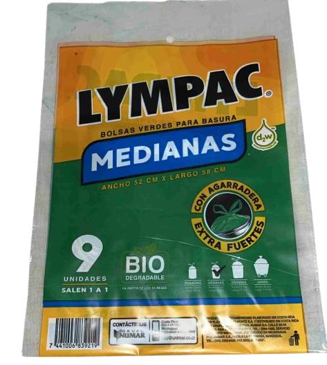 BOLSA LYMPAC PARA BASURA MEDIANA VERDE BIODEGRADABLE 9 UND