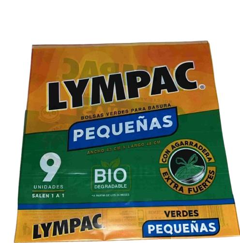 BOLSA LYMPAC PARA BASURA PEQUEÑA VERDE BIODEGRADABLE 9.00 UND