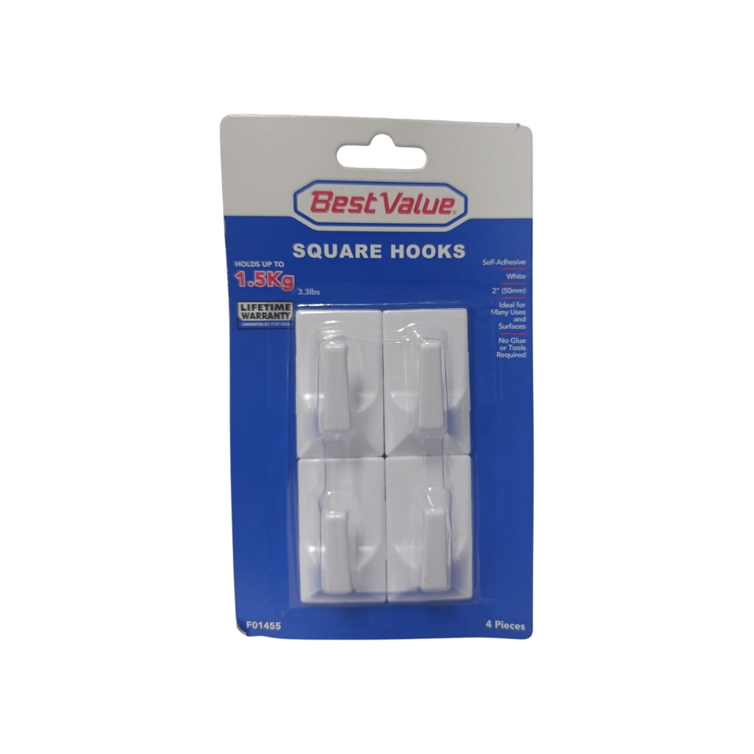 GANCHO ADHESIVO BEST VALUE CUADRADO BLANCO 50 MM 4 UND