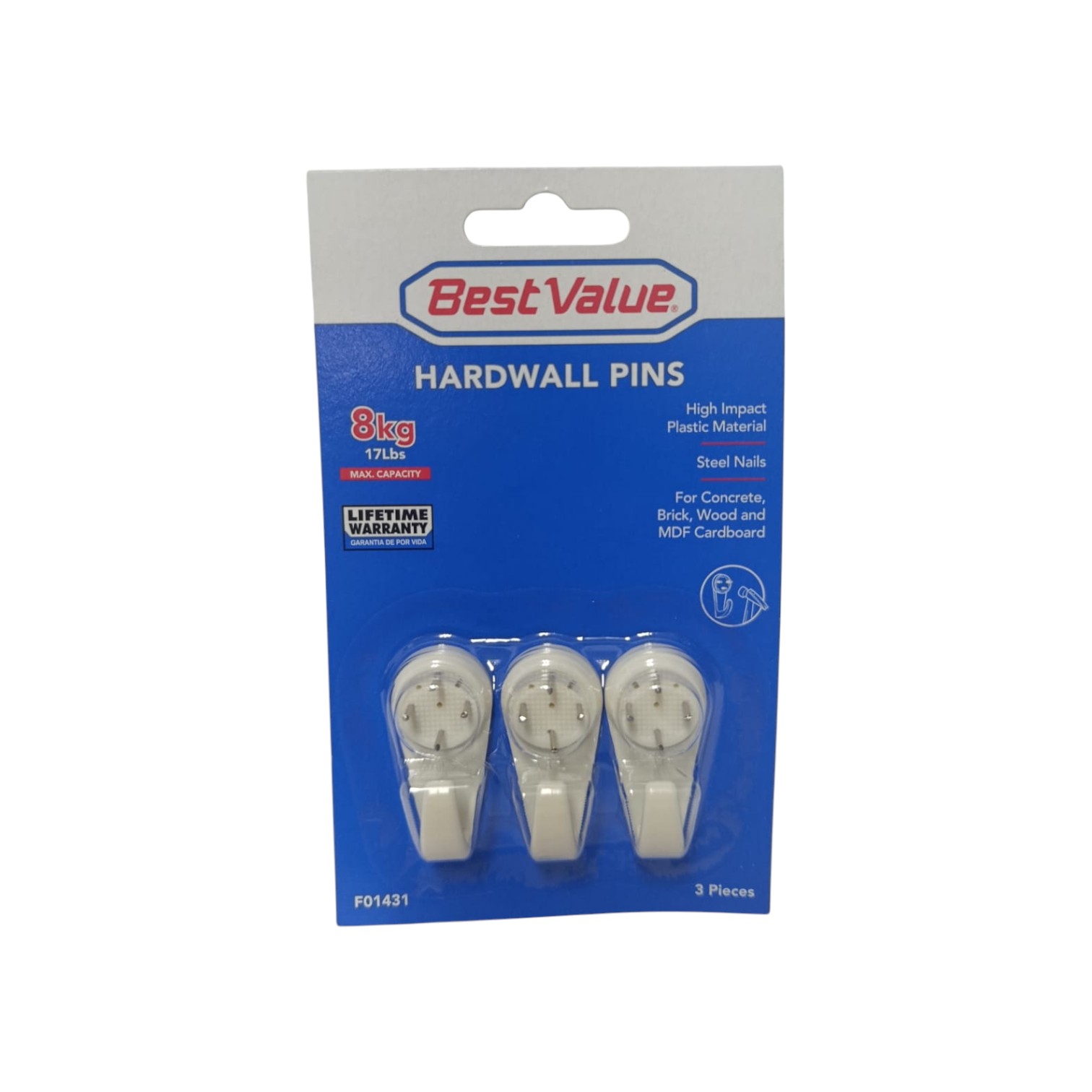 GANCHO CON CLAVO BEST VALUE BLANCO 3 UND